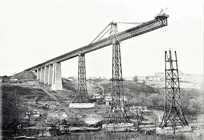 - La construction des viaducs de Rouzat et de Neuvial est confiée à Gustave Eiffel qui vient de créer son entreprise avec Théophile Seyrig. Il s’en tiendra aux plans de Moreaux en apportant quelques perfectionnements notamment sur le système d’étrésillonnement des piles.